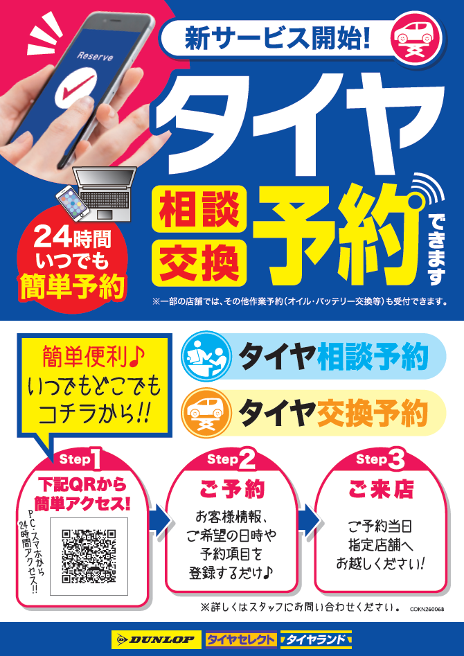 定休日や土日の都合で、1週間以内にご予約をお入れすると、タイヤの手配が間に合わない場合があります。
