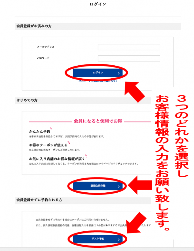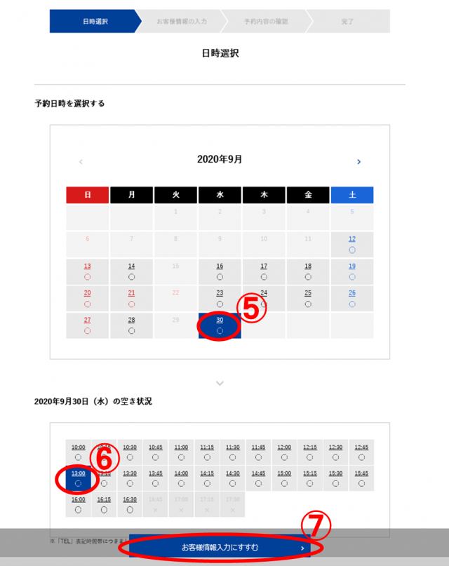 ⑦⑤⑥の入力が完了すると「お客様情報の入力にすすむ」が押せますのでクリック!