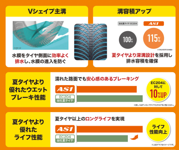 夏タイヤに比べてライフ性能が向上しているんです!!!
