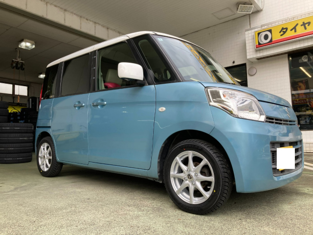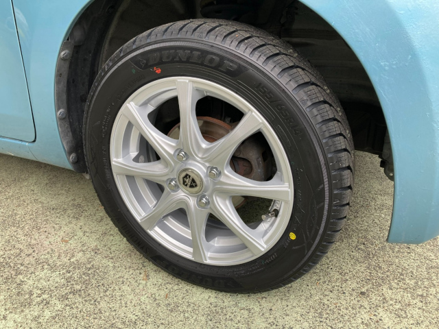 元から14インチを履いてますが、スチールホイールだったため、アルミホイールの14インチシンクロウェザーセットをご購入いただいました!