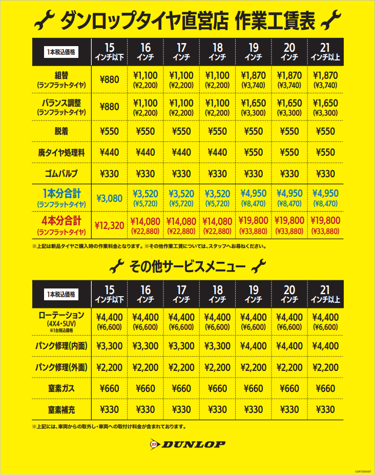 もちろんシンクロウェザーや他のタイヤのお見積りも出せますので
