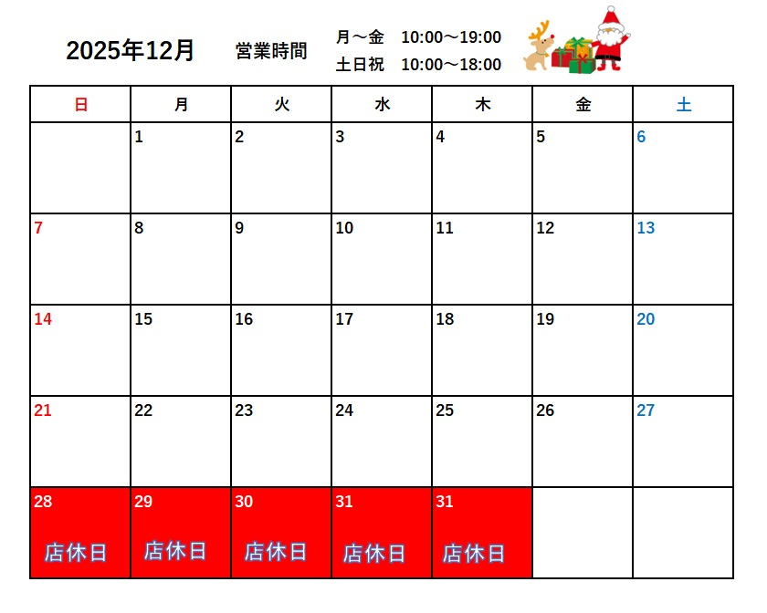 12月の定休日・営業時間は