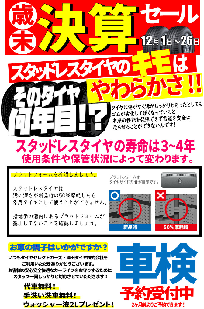 これから年末にかけてスタッドレスタイヤの在庫数も減ってきます!