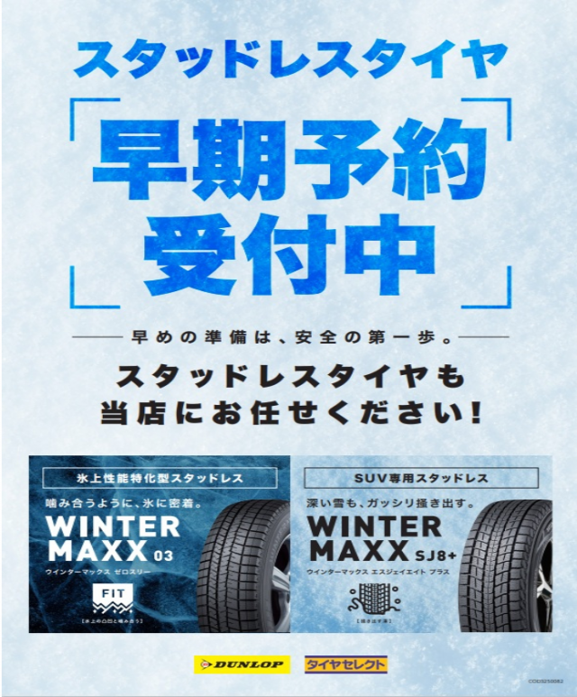 ハイシーズン履き替え料金のご案内 2025年12月1日~2026年1月12日まで ハイシーズンとさせて頂きます。 早期お取付予約を承っております。 宜しくお願い致します。