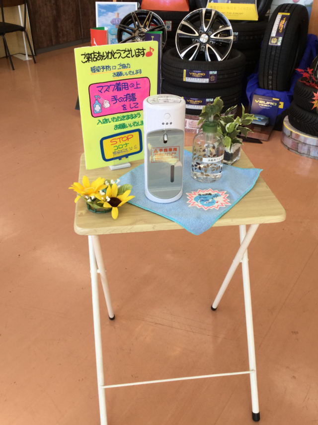入口近くに消毒コーナー設置いたしましたので、ご利用して下さるよう