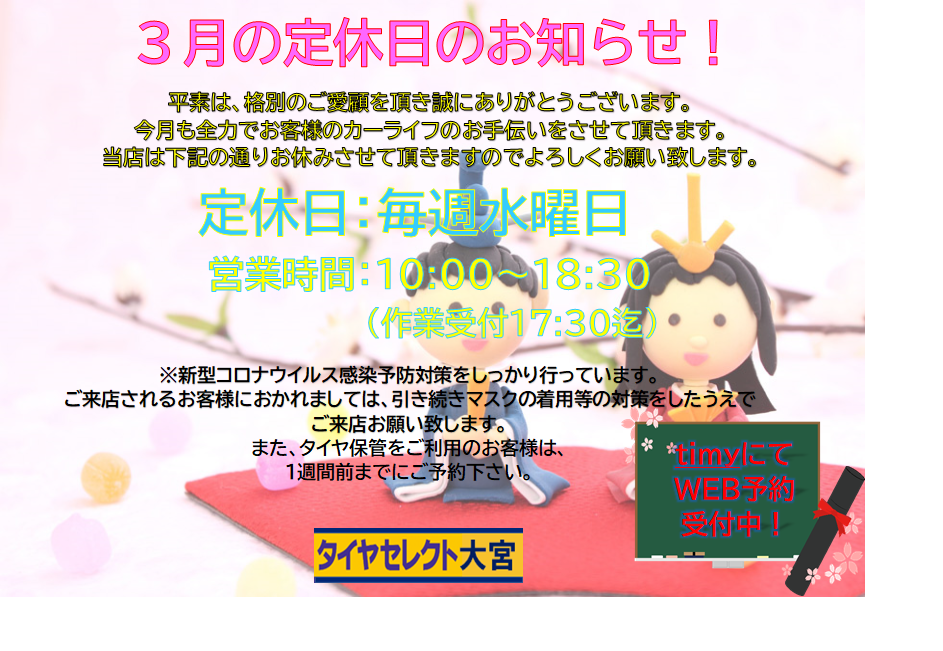 【3月定休日のお知らせ~!!】