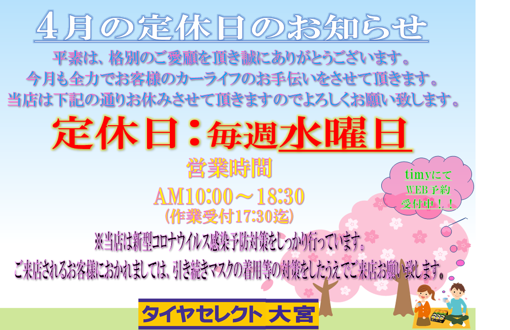 タイヤセレクト大宮です。