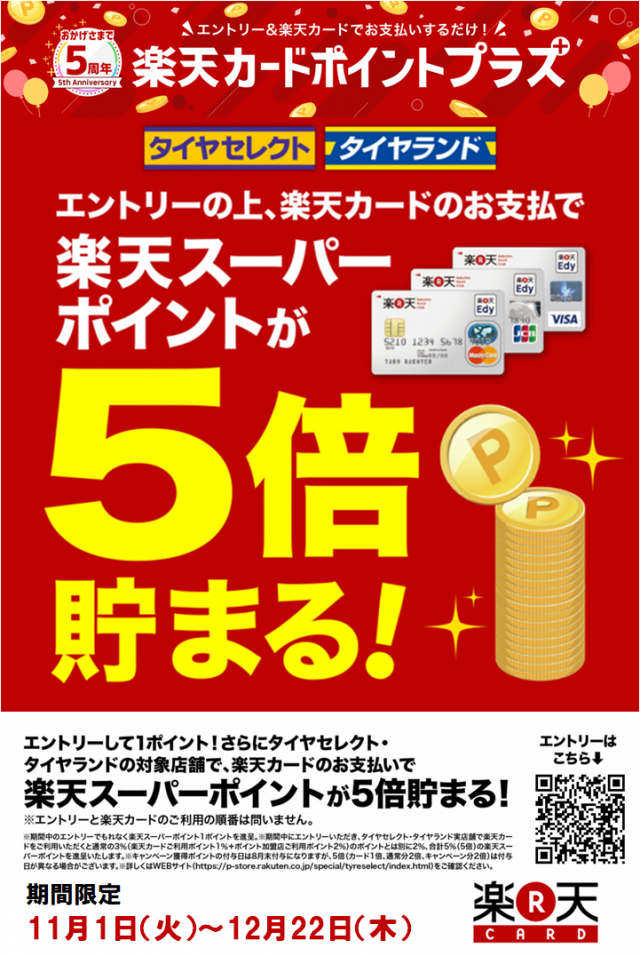 期間限定! いま、楽天カードでお支払いいただくと なんと!! ポイント5倍!(≧▽≦) ぜひぜひご利用ください! ※キャンペーンに参加するにはご登録が必要です! ※キャンペーン期間11/1~12/22まで