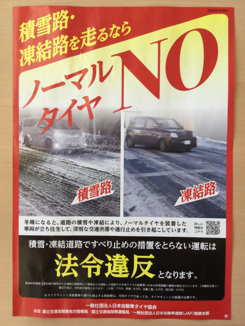 積雪路面や凍結路面を 滑り止め処置を取らない行為は 法令違反となります!! 降雪時、夏タイヤのままで走行してしまうと 違反対象になります!!(;゚Д゚) 事故や交通渋滞を引き起こさない為にも スタッドレスタイヤの...