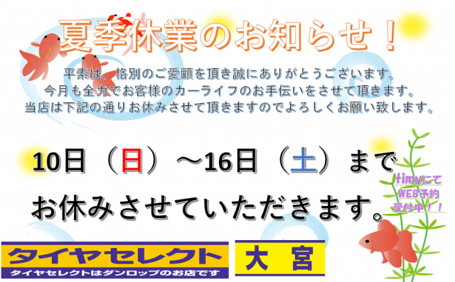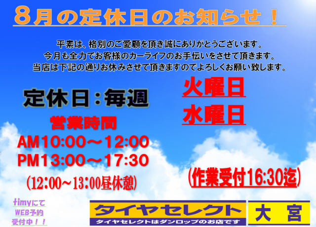 緊急事態宣言の解除が発表されたことを受け、当該エリアのタイヤセレクト・タイヤランド(直営店)におきましては、順次、通常営業を再開いたします。 お客様及び従業員の安全を第一に考え、予約制の導入や接客時間の短縮をはかることで、お客様同士の距離の確保や、スタッフとの接触機会を最小限に心がけるなどの感染防止に努めてまいります。 (店内には消毒液を設置しております。また換気、テーブル等の消毒も実施しております。) 詳細は「 お知らせ」をご確認ください。 ご不便やご迷惑をおかけいたしますが、何卒宜しくお願い申し上げます。