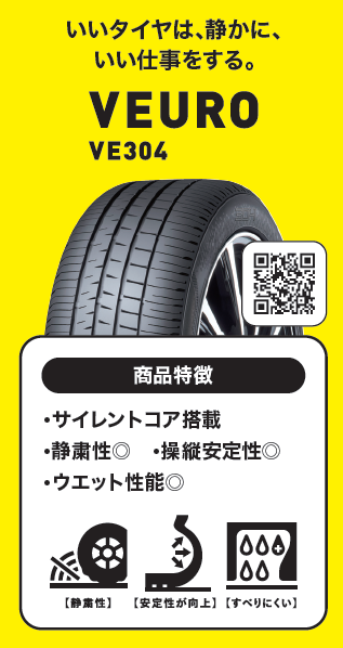 高評価を頂いているタイヤの一つ!! 今回はそう!!!! 「VEURO VE304」についてご紹介させて頂きます。 ①ダンロップタイヤ最上級の静粛性と乗り心地を備えてます。 ②安心感のウェット性能で高グリップ力。 ③高次元...