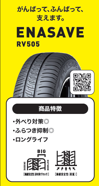 「ダンロップ ENASAVE RV505」をご紹介いたします!! ハイトなお車にオススメのタイヤ! 高速道路でスピードを出している時・・ 特にふらつきを感じませんか!? それを解決してくれるのがこのタイヤ~! 「踏ん張って...