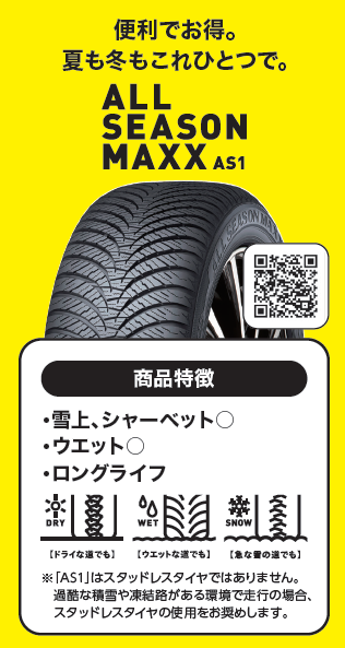 人気急上昇!(^^)/~~~ 「ダンロップ ALL SEASON MAXX AS1」 の特徴を紹介しますよ~ ①【ドライな道でも】中央扇形ブロックがドライ走行での走りやすさ実現。 ②【ウェットな道でも】V形の溝が効率的に排水。しっかりと...