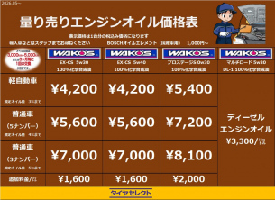 昨今の世界情勢もあり、苦渋の決断ではございますが、2026年5月1日よりエンジンオイルの価格を改定させていただきます