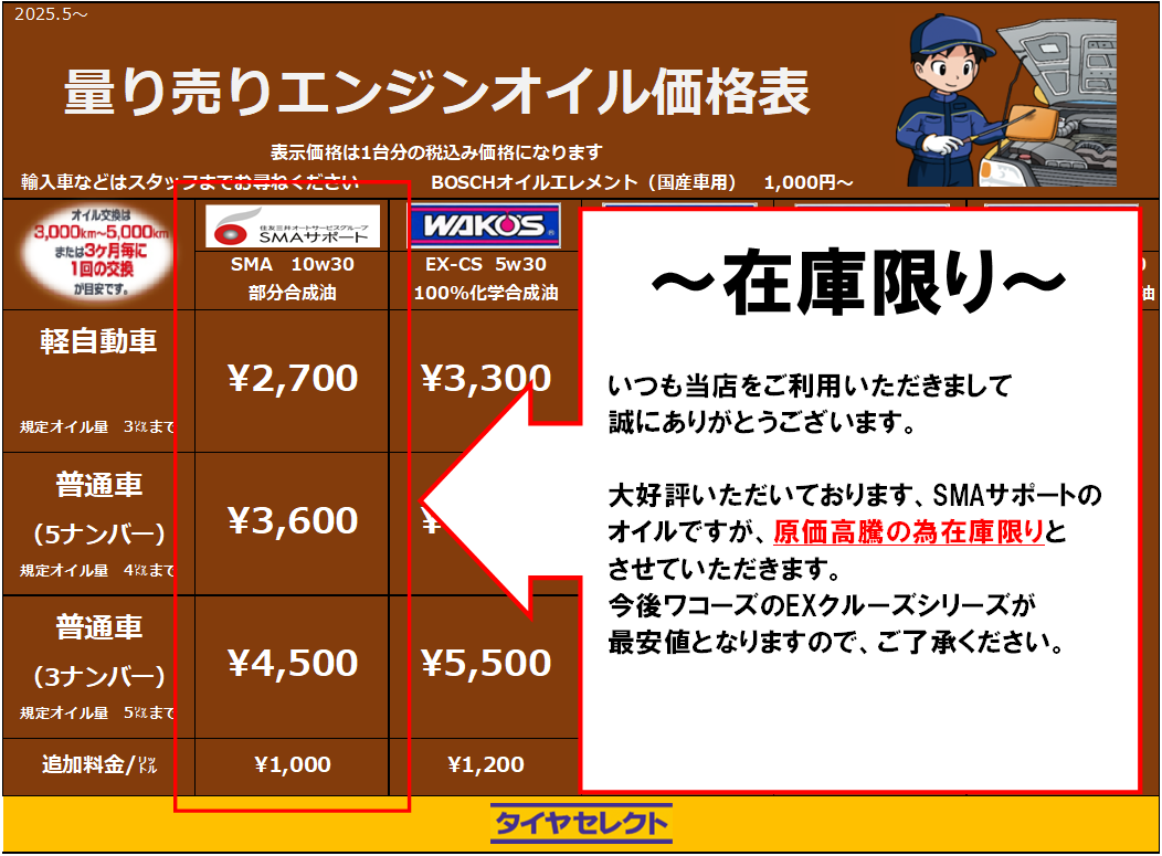 エンジンオイル関係のおしらせ