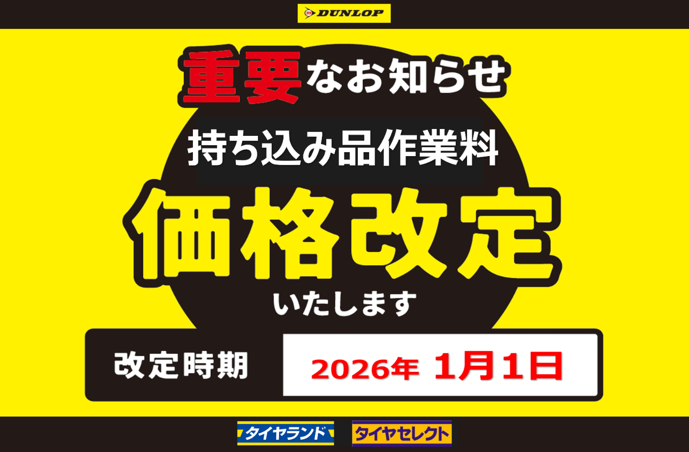 勝手ながら2026年1月1日(木)より持ち込み作業工賃の価格改定をさせて頂くことになりました。