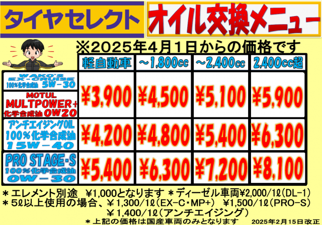 冬タイヤの履き替えハイシーズン価格変更のお知らせです。 2025年12月01日から2026年1月12日までをハイシーズンとし タイヤの履き替え作業工賃の変更を行います。 ご不明な点などございましたら、お気軽に当店スタッフ...