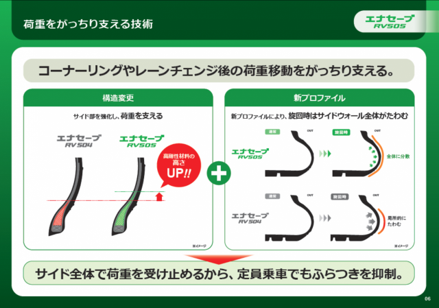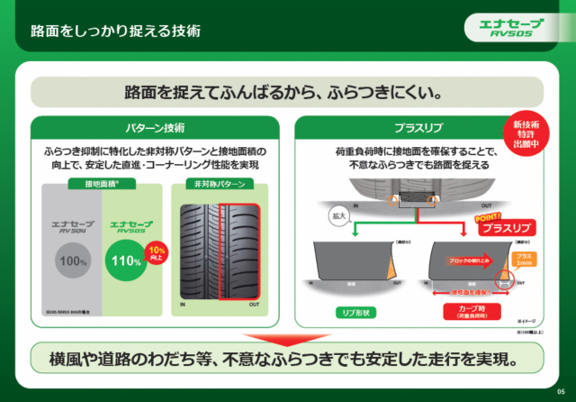 この『RV505』かなり思い切ってタイヤの設計をイチから変えてます。