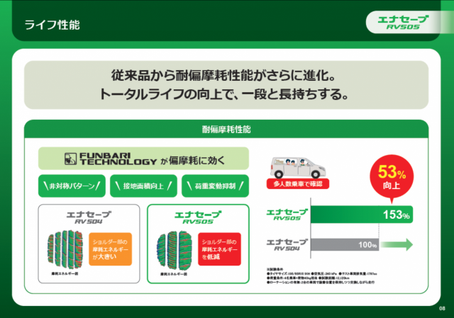 今回新発売の商品はいわゆるミニバンタイヤ。