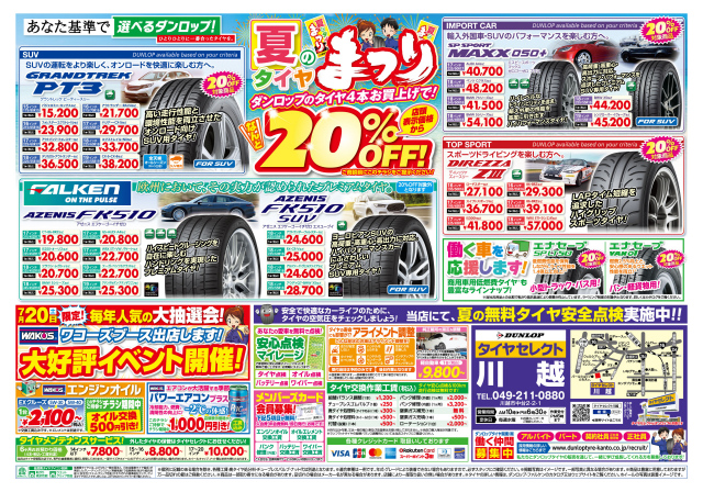 ダンロップ直営タイヤセレクト川越店が『夏のタイヤまつり』と題して