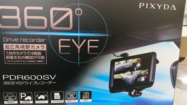 2つ目はセイワのPDR600SVです。 こちらの製品の特長は360°撮影できる広角レンズです。 一台のカメラで前方だけでなく、なんと左右と運転席周りも撮影できます。