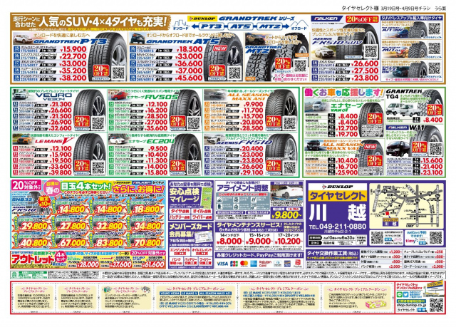 タイヤ4本お買い上げで20%OFFはもちろん、