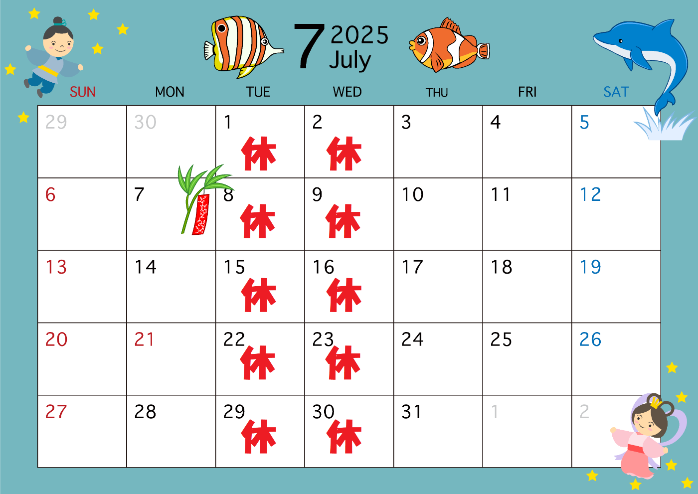 7月営業日のお知らせです(^^)/ 引き続き火曜日水曜日が定休日となっておりますのでお気を付けください(^^♪