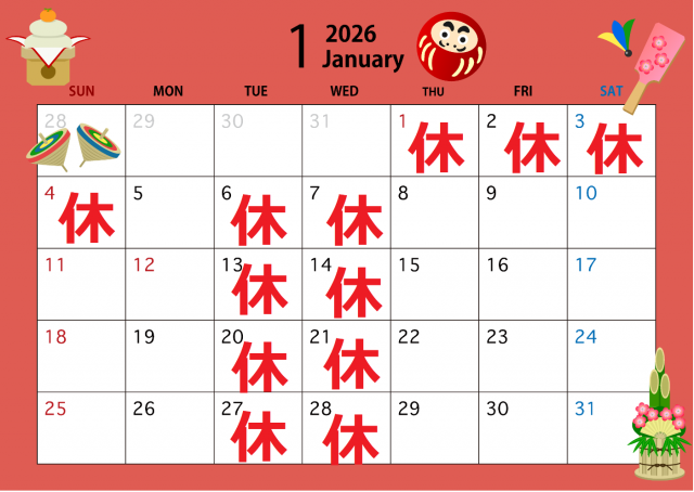 年末年始のお知らせと2026年の営業日のお知らせです(^^♪