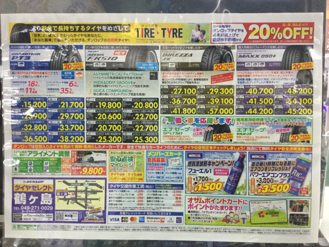 「ダンロップのタイヤ4本お買い上げで、店頭表示価格から20%OFF」