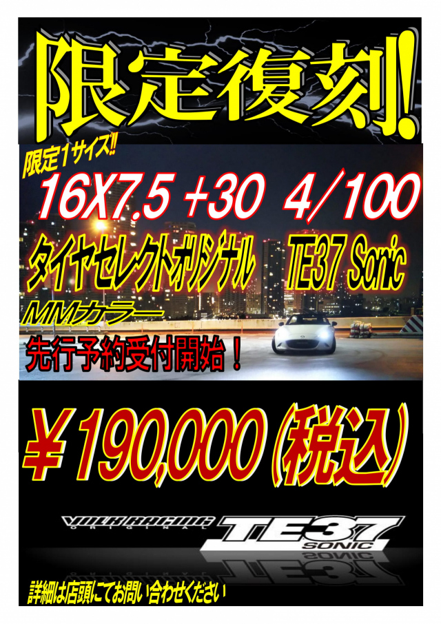 この度RAYS様との協力で、カタログに載っていないオリジナルサイズのTE37を受注することになりました(*^^)v