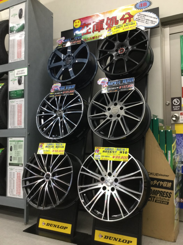 現在、アルミホイールのアウトレットセールとスタッドレスタイヤの在庫処分セールを実施中です!