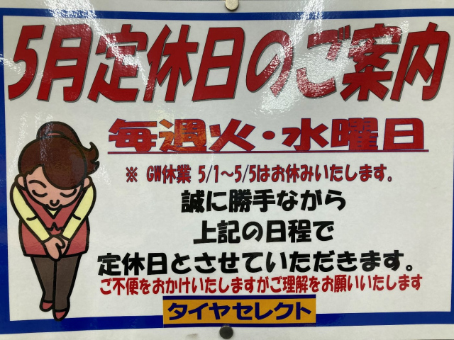 5月定休日のご案内