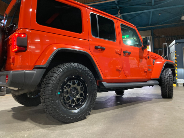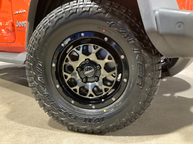 車はなんと『ラングラー』にレイズのチームデイトナM9 サイズは17インチ!!