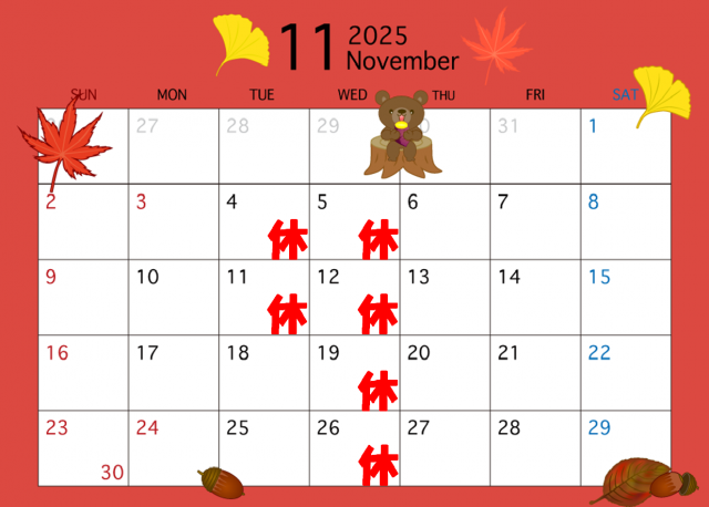 11月定休日のお知らせです!