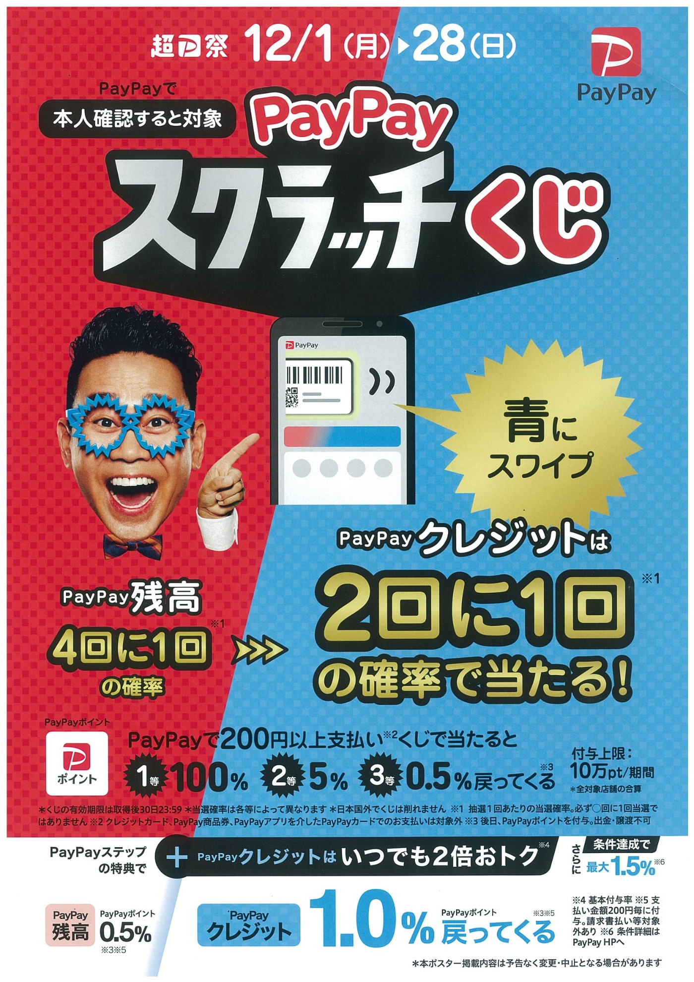 12/1(月)~28(日)の間PayPayスクラッチくじ開催中です。