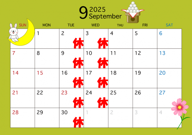お盆が過ぎてもこの猛暑\(゜ロ\)(/ロ゜)/ この先もまだまだ暑さは続くそうなので、十分気を付けていきましょう! 9月の定休日になります! 火・水曜日が定休日になります お間違えの無いようお願い致します(^O^)/