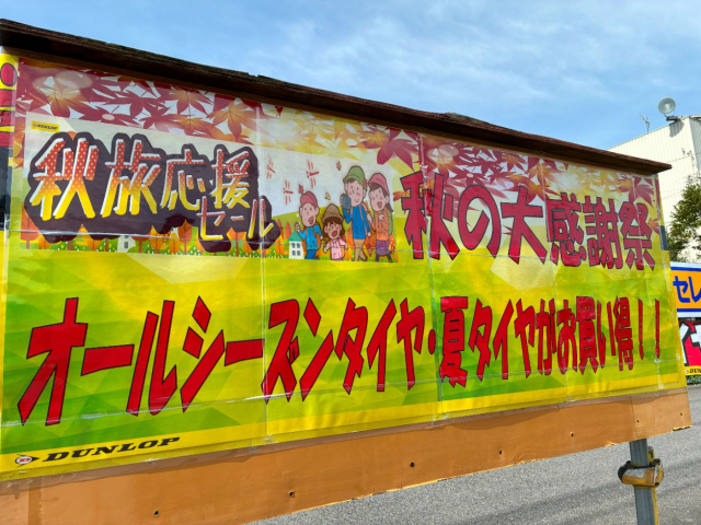 秋旅応援セールとしてオールシーズンタイヤ・夏タイヤが お買い得です(≧▽≦) これからお出かけしやすい季節(´▽`*) お出かけ前にタイヤチェックしておきましょう!! もちろんバッテリー・エンジンオイル・パンク...