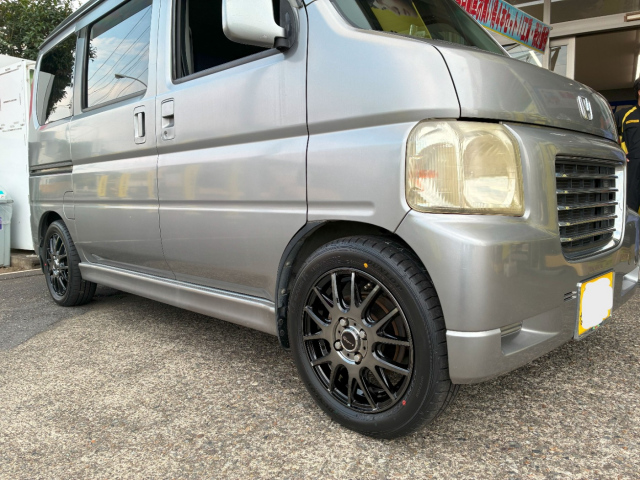 今回はバモスホビオにタイヤホイールセットを取付たのでご紹介(^O^)/ ホイール【ロフィーダXM27】14インチ タイヤ 【ルマンV+】165/60R14 ブラックポリッシュはどんな車の色にもあいま...