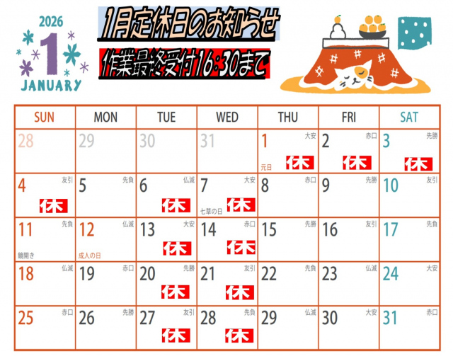 1月の店休日は1~4日までと 毎週火曜水曜日が店休日となっております。 よろしくお願いいたします。