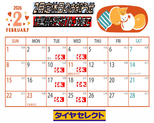 2月店休日は毎週火曜水曜日となっております。 パーツのお取り付けアライメントなども再開しておりますので よろしくお願いいたします。
