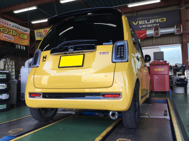 N-ONEに柿本のマフラーとRSRのハーフダウンのサスペンションを