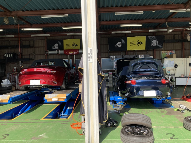 先日NDロードスターにHKSハイパーマックスSをお取付けさせていただきましたっ