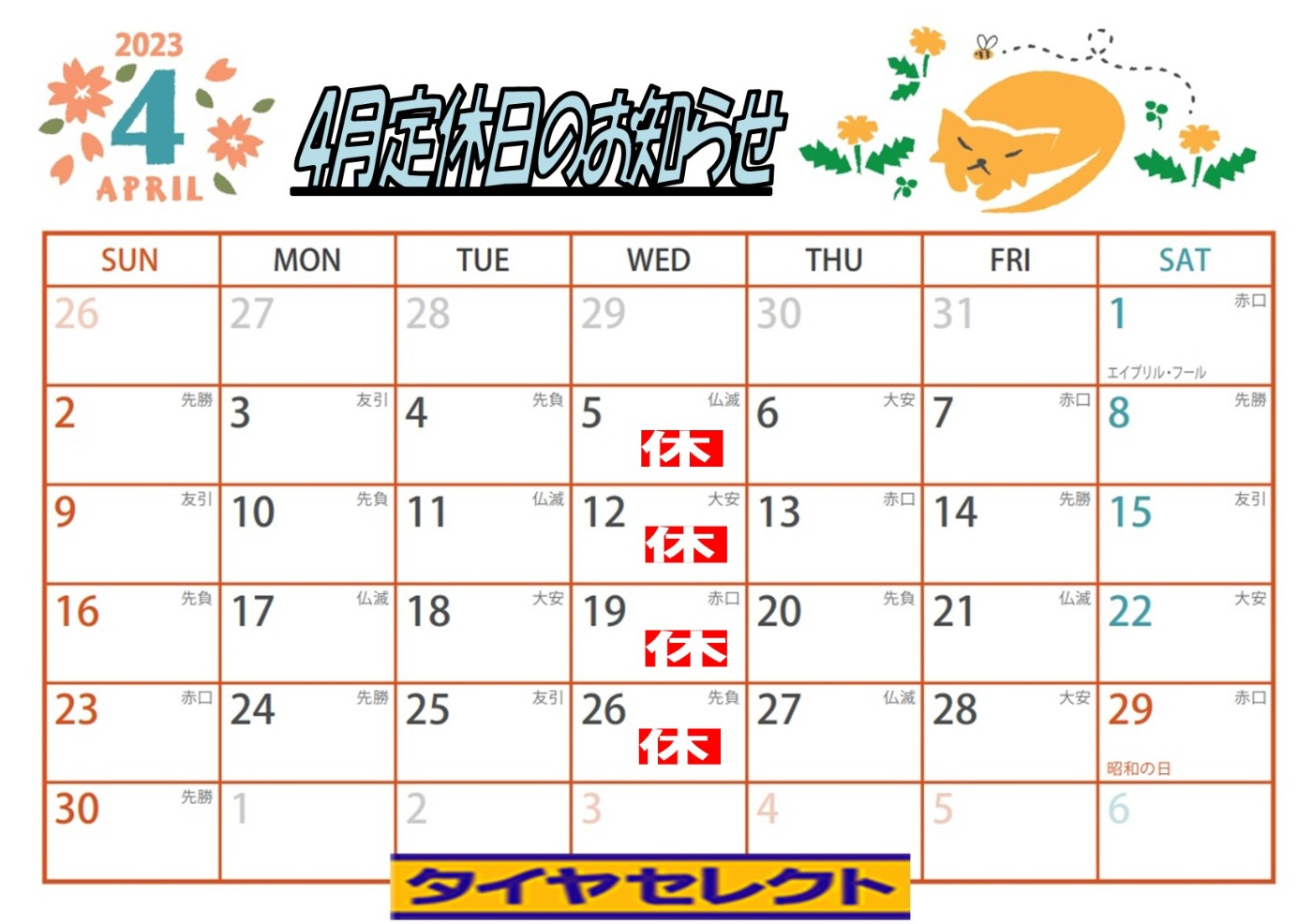 4月店休日のお知らせ