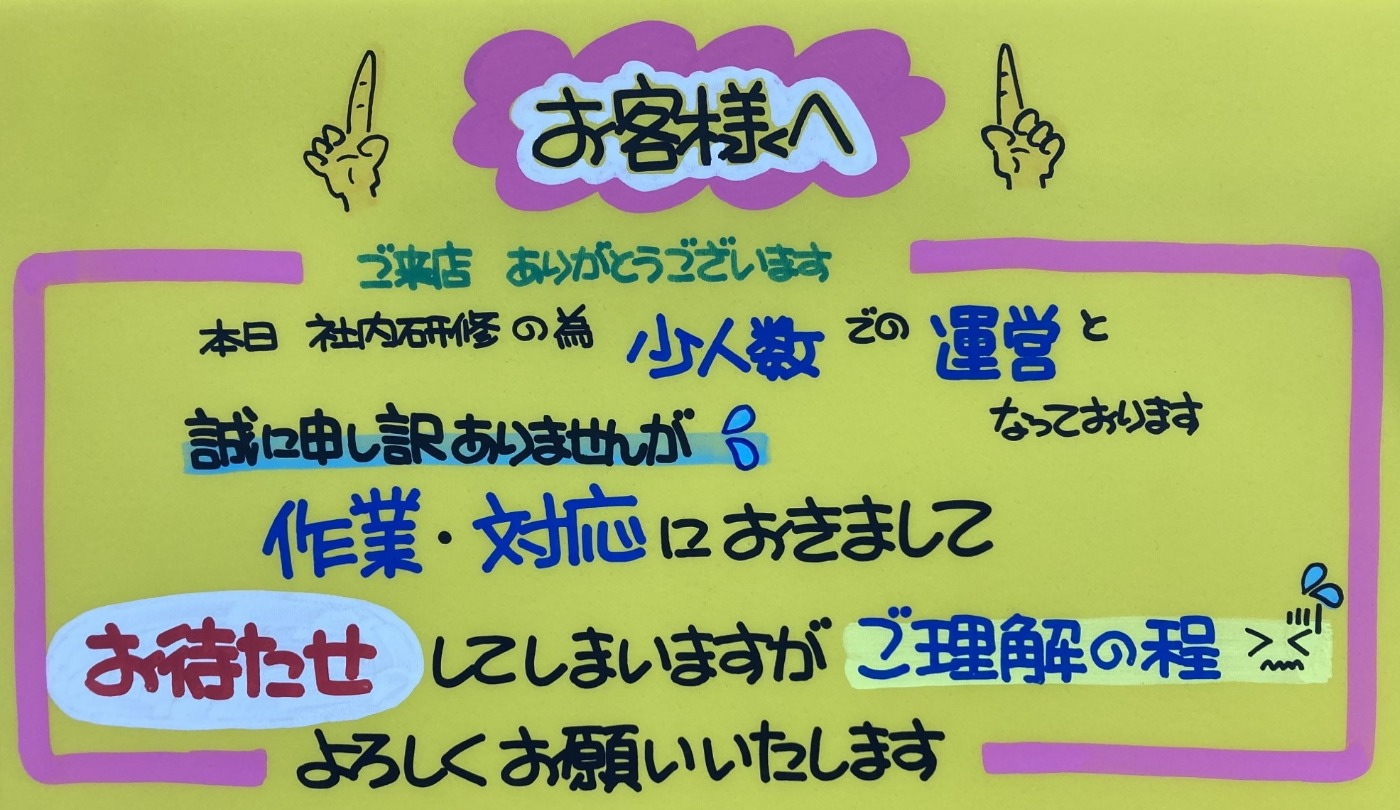 4月4日営業につきまして 4月4日(火)の営業につきまして、社内研修の為 少人数での運営となっております。 作業、対応につきましてお時間をいただく事がございますが ご理解、ご協力をお願い致します。 2023.04.03