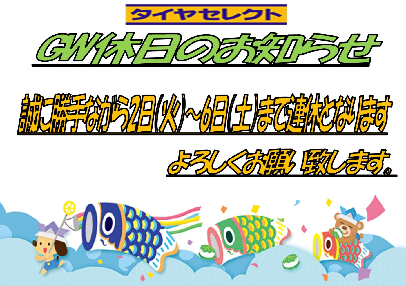 5月2日(火)~5月6日(土)まで連休となりますので よろしくお願い致します。