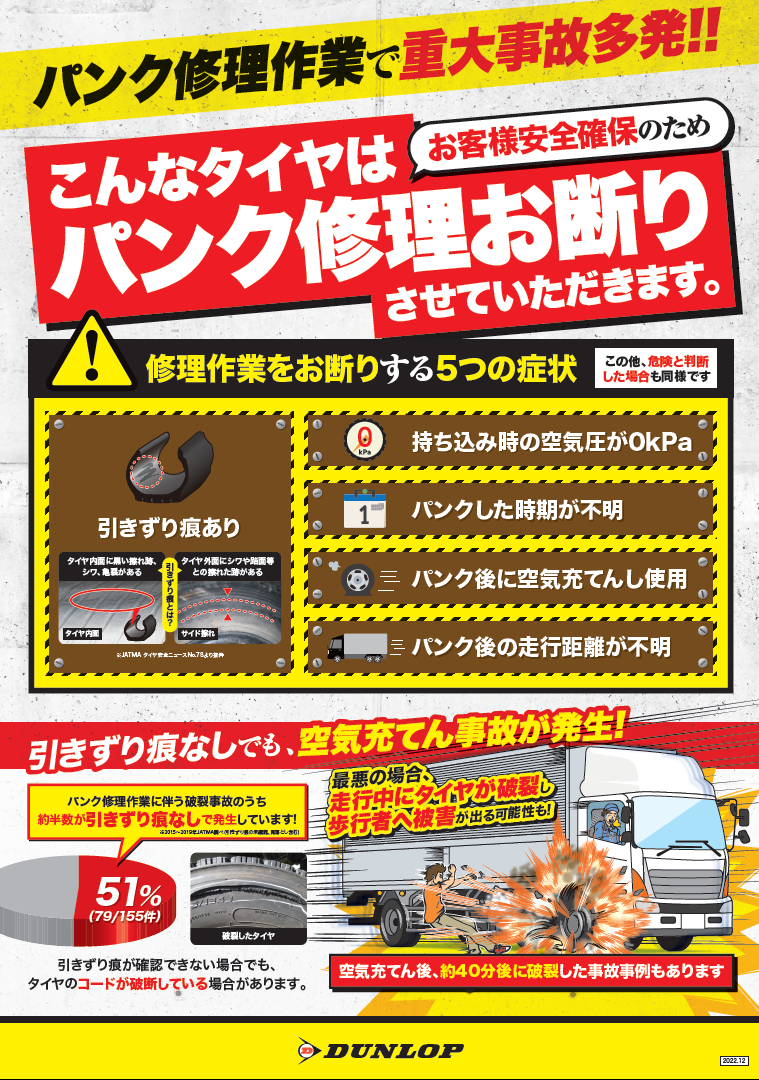 パンク修理可能かどうかを判断させていただきますのでご了承ください。