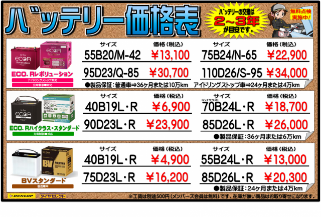 今月は新春セール実施中!!バッテリーは下記の価格から