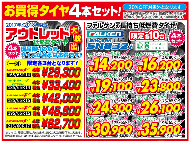 お買得タイヤ4本セット 限定各10台!!