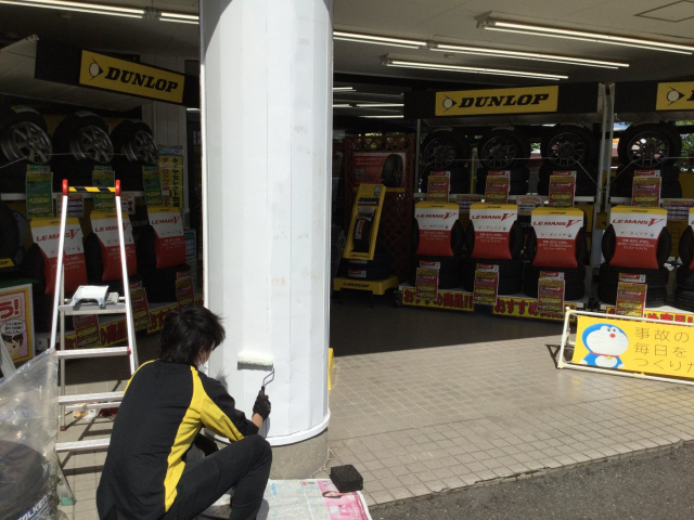 今年は、店頭入り口の柱を2本塗り直しました!!