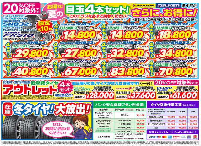 夏タイヤはもちろん、冬タイヤもセール対象!!